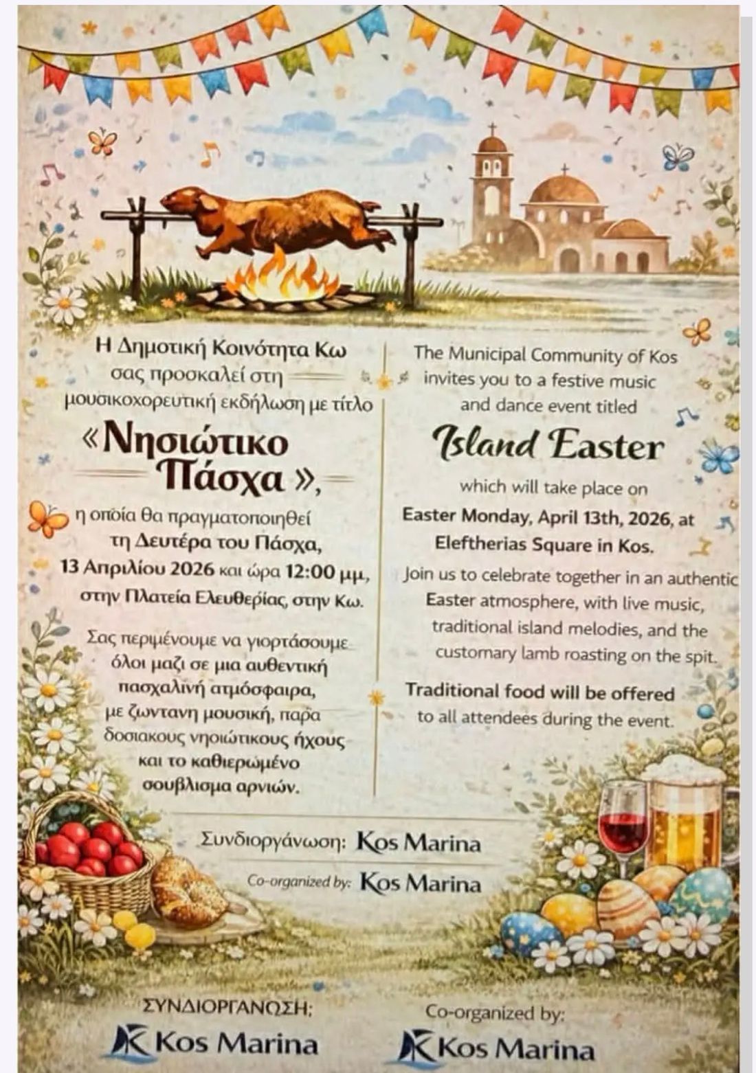 Παραδοσιακό Πάσχα στην Κω: Γλέντι με αρνιά και ζωντανή μουσική στην Πλ. Ελευθερίας την Δευτέρα του Πάσχα