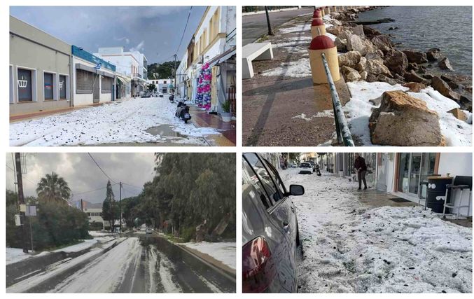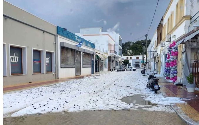 Πρωτοφανής χαλαζόπτωση στη Λέρο ανήμερα Χριστουγέννων