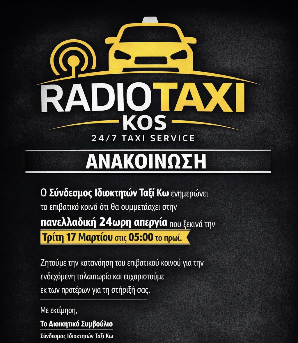 Ραδιοταξί Κω: Συμμετοχή στην απεργιακή κινητοποίηση την Τρίτη 17/3