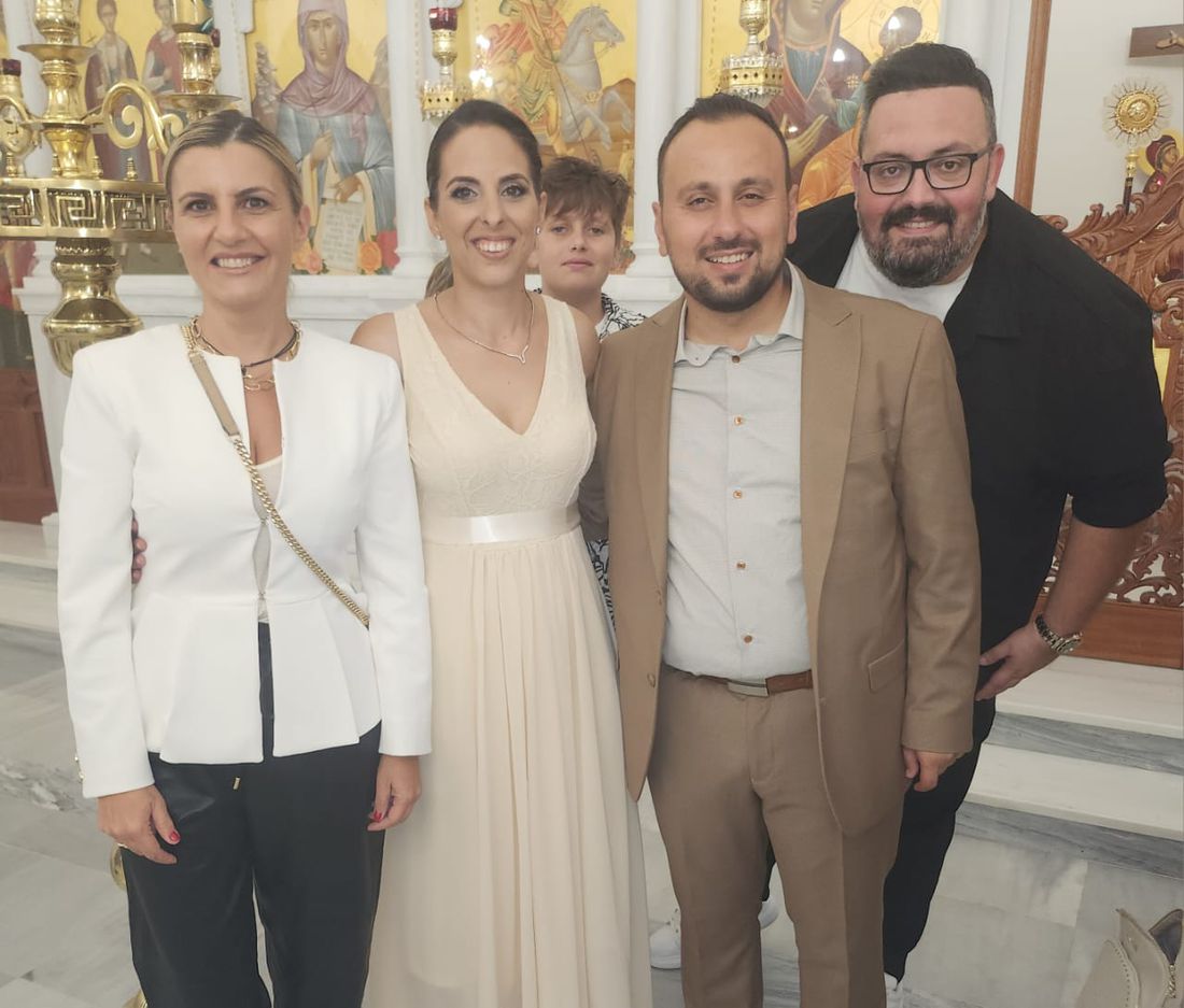 Συγγενείς, φίλοι, συνάδελφοι και αγαπημένα πρόσωπα του ζευγαριού παραβρέθηκαν στο χαρμόσυνο γεγονός, γεμίζοντας την εκκλησία με ευχές, χαμόγελα και θερμά χειροκροτήματα για τον νεοφώτιστο Παναγιώτη.