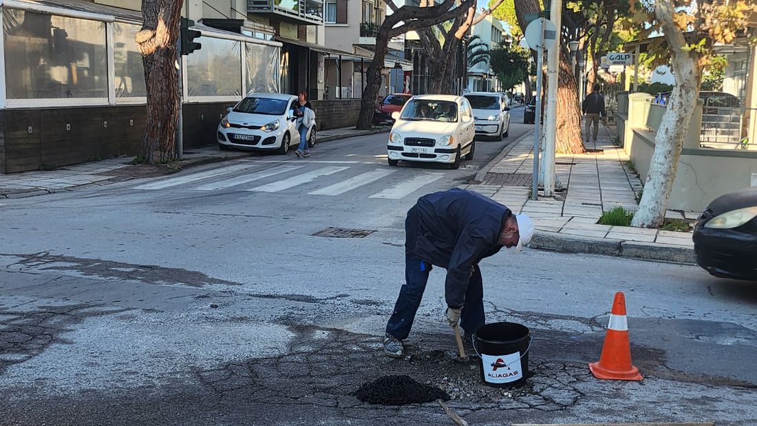 Συνεργεία του Δήμου κλείνουν τις λακκούβες στη διασταύρωση της οδού Ελ. Βενιζέλου και Μ. Αλεξάνδρου