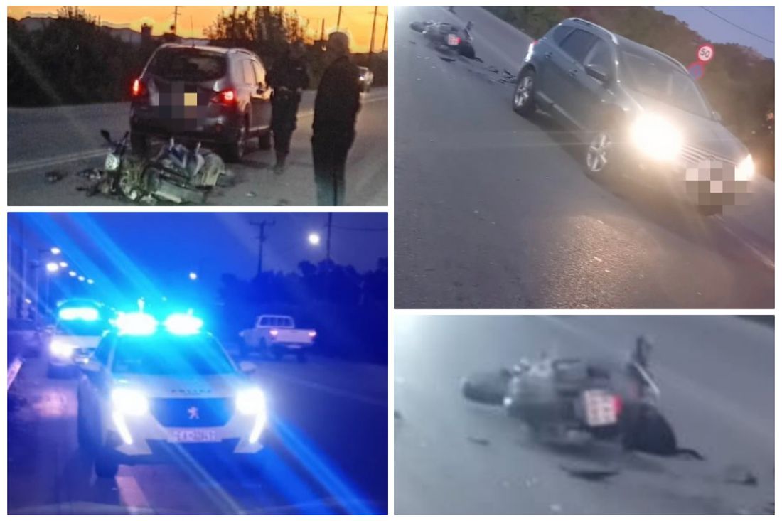 Από την σύγκρουση τραυματίστηκε ο οδηγος του δικύκλου, ο οποίος μεταφέρθηκε με ασθενοφόρο στο νοσοκομείο (δεν έχει κάτι το ανησυχητικό)