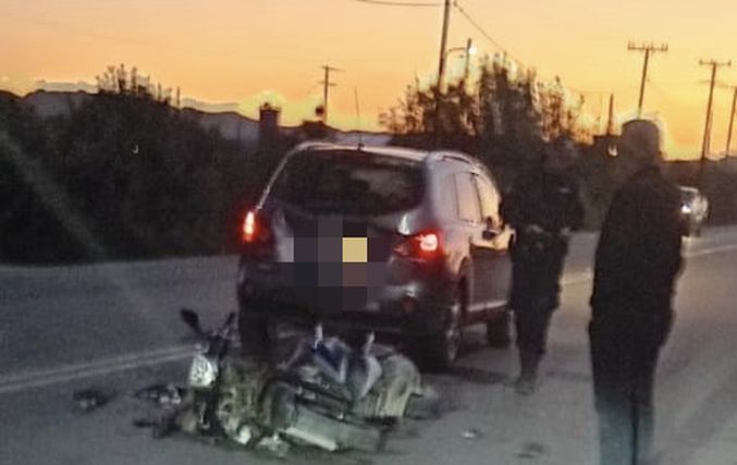 Τροχαίο ατύχημα σημειώθηκε το απόγευμα της Πέμπτης, στον Επαρχιακό (προς Μαρμάρι), όταν ΙΧ συγκρούστηκε με δίκυκλο.
