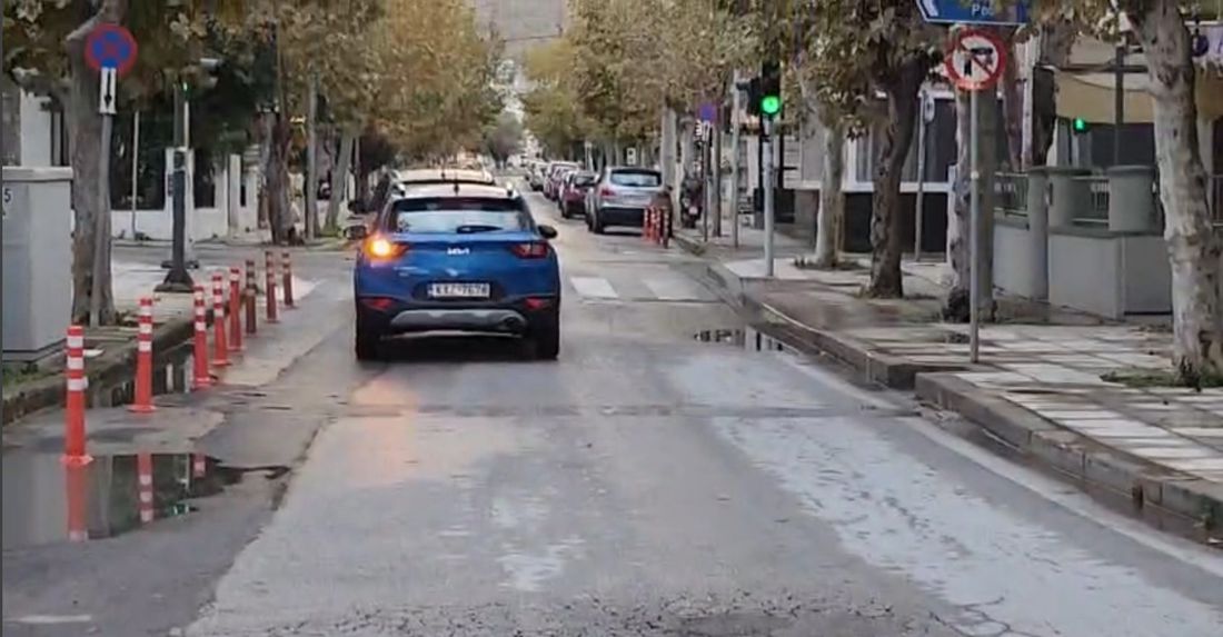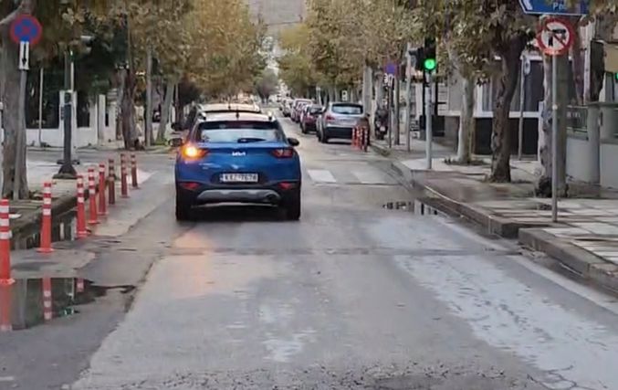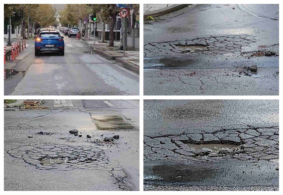 Βομβαρδισμένο τοπίο θυμίζει ο δρόμος στα φανάρια της Ελ. Βενιζέλου στην πόλη της Κω, όπου το οδόστρωμα, μετά και τις τελευταίες έντονες βροχοπτώσεις, έχει υποστεί σημαντικές ζημιές.