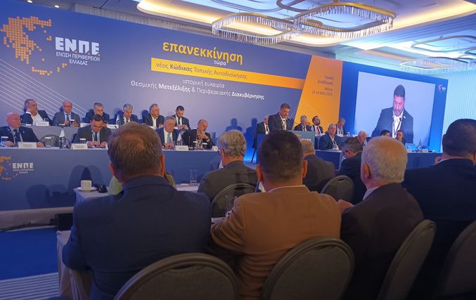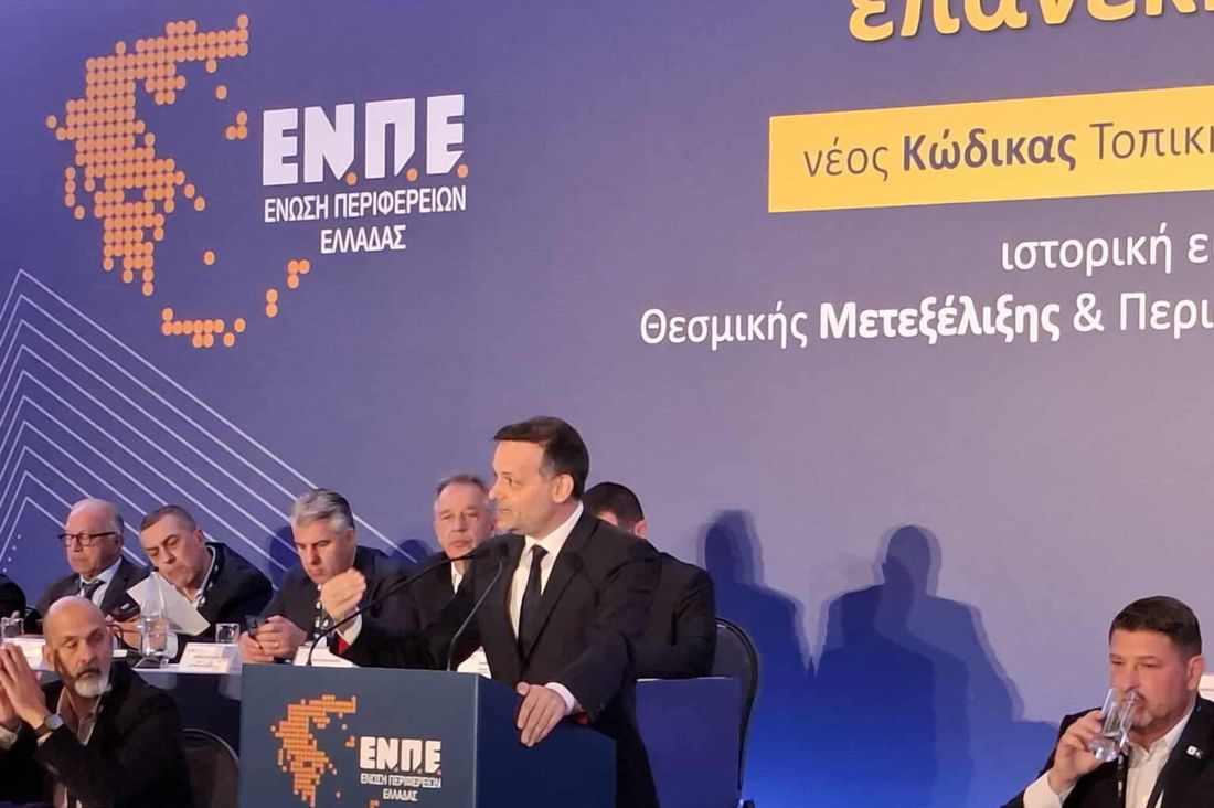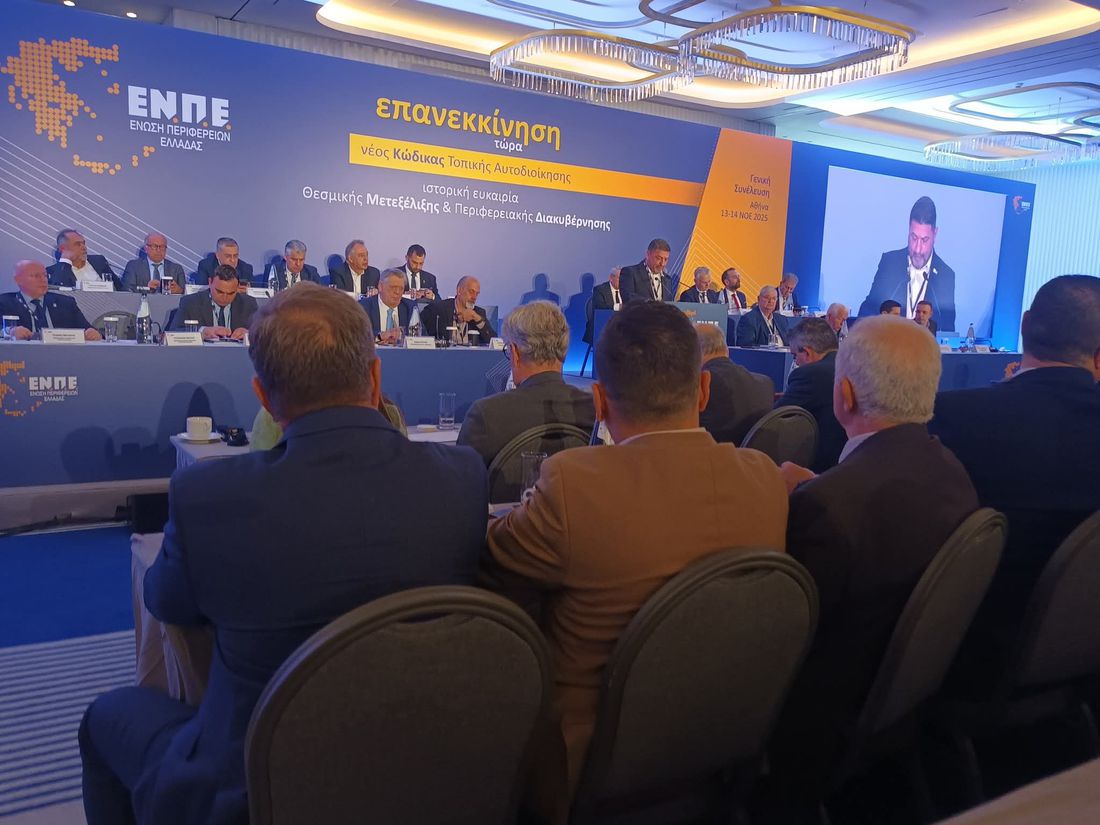 Στην Αθήνα σήμερα, στη Γενική Συνέλευση της ΕΝ.Π.Ε., παρουσία του Αντιπροέδρου της Κυβέρνησης, του Υπουργού Υποδομών και Μεταφορών, του Υπουργού Εσωτερικών, του Υφυπουργού παρά τω Πρωθυπουργώ, του Προέδρου της ΚΕΔΕ, του Δημάρχου Αθηναίων και όλων των Περιφερειάρχων, Αντιπεριφερειαρχών και Μελών της Ένωσης, συζητούμε το Σχέδιο του Νέου Κώδικα Τοπικής Αυτοδιοίκησης, καθώς και κρίσιμα ζητήματα για τη διαχείριση των ευρωπαϊκών πόρων.